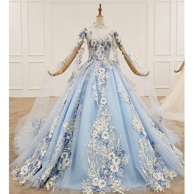Buy BGW 20219ht 2020 Formal Dress Women Elegant Pretty Appliqued Ball Gown Light Blue High Neck Crystal Muslim Women Evening Dresses and You will Save USD 0 or 0% %, Becuase You Just Pay for 1129.80 not Full Price for 1129.80