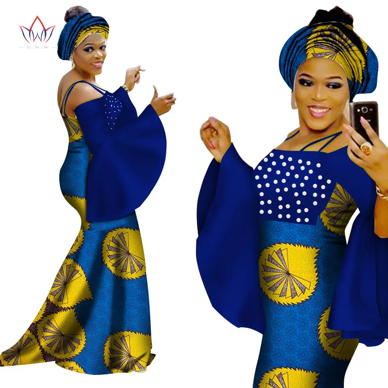 Summer Women Dress African Lady Dresses African Print Dresses Off The Shoulder Asymmetrical Dashiki Long Dress 6XL BRW WY2332