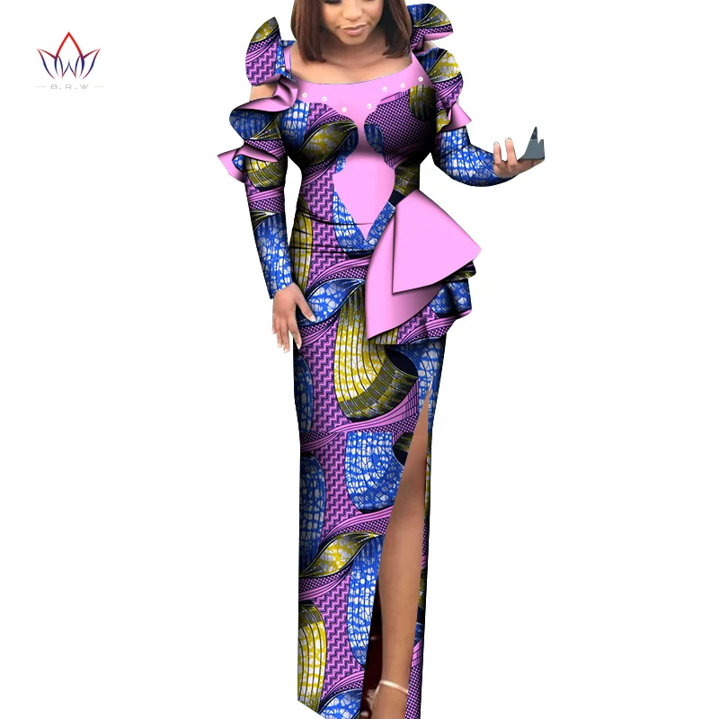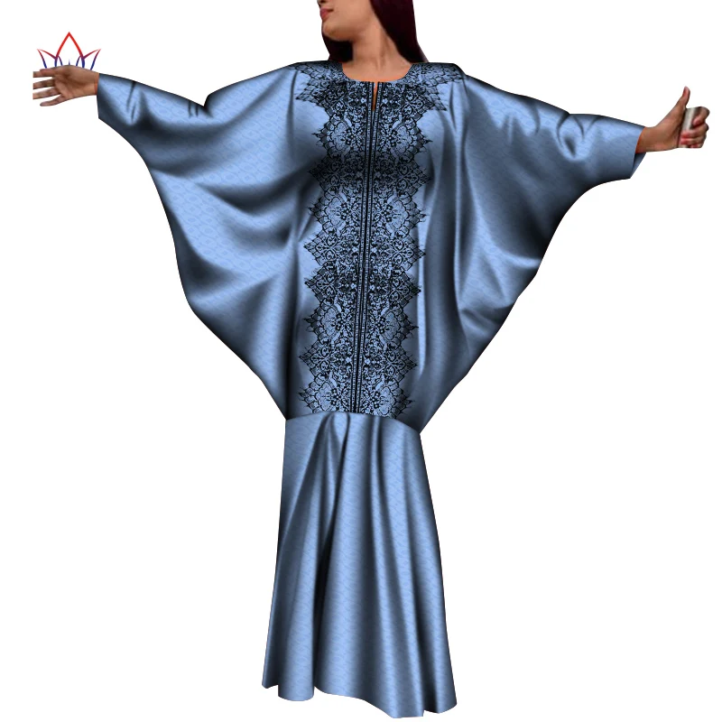 BRW Maxi Dress for African Bazin Riche O-Neck Bat sleeve Print Wax Long Dresses Plus Size 6XL Fashion Africa Clothing WY8040