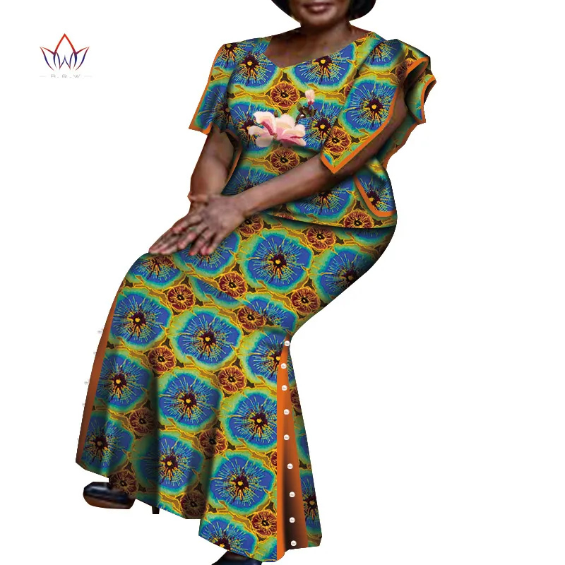 Addition Information of African short Sleeve Print Tops and Skirt Sets for Women Bazin Riche African Clothing 2 Pieces Customize Skirts Sets WY4392