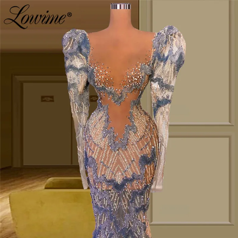 Lowime See Through Beaded Elegant Mermaid Evening Dresses Celebrity Dress Customized Illusion Dubai Long Party Prom Gowns 2021
