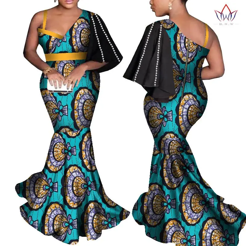 Mermaid African Dresses New Arrival Pearl string Floor Length Women Formal Occasion Dress Africa Evening Gowns for Women WY7811