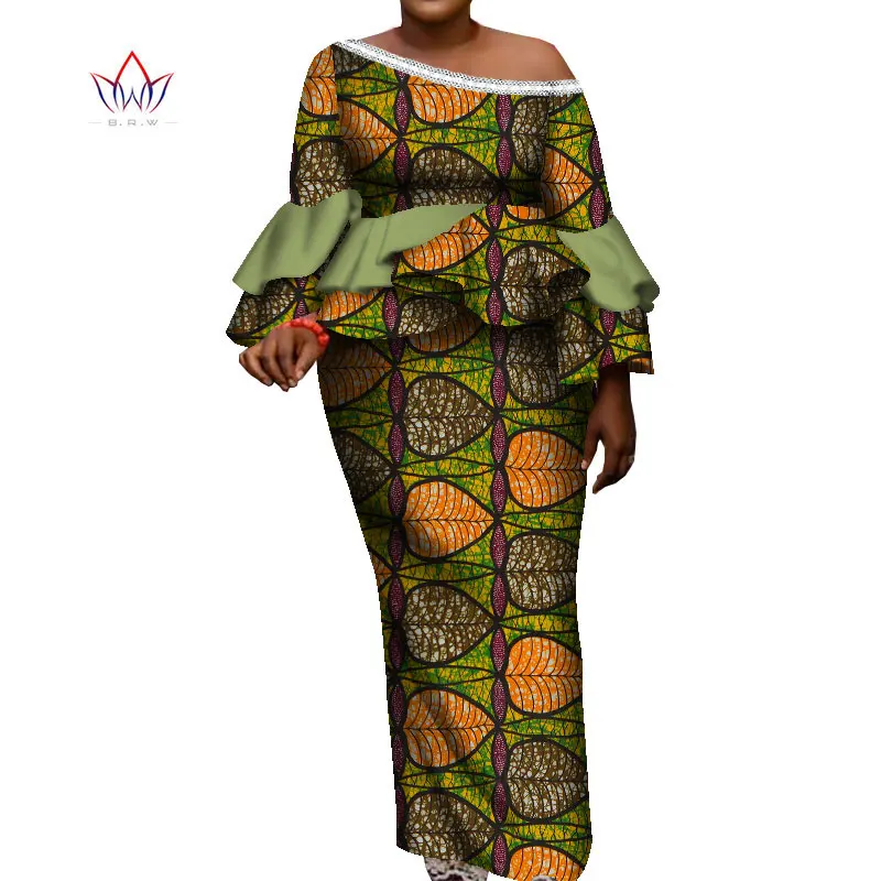 Traditional Clothing For Women Ruffles Top And Skirt Ankle-length Vintage Set Print 2 Pcs Plus Size African Style Suit WY8149