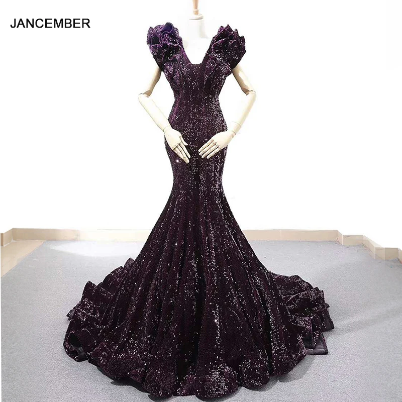 J66736 jancember purple mermaid evening dress v-neck special cap sleeves trumpet long dress evening gown vestido de noiva sereia
