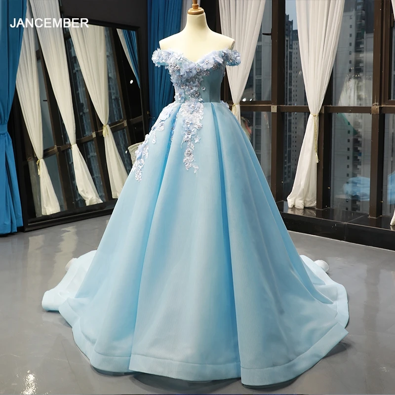 Addition Information of J66795 jancember sky blue evening dress v-neck off shoulder lace up back flowers formal dress party vestidos de fiesta de noche