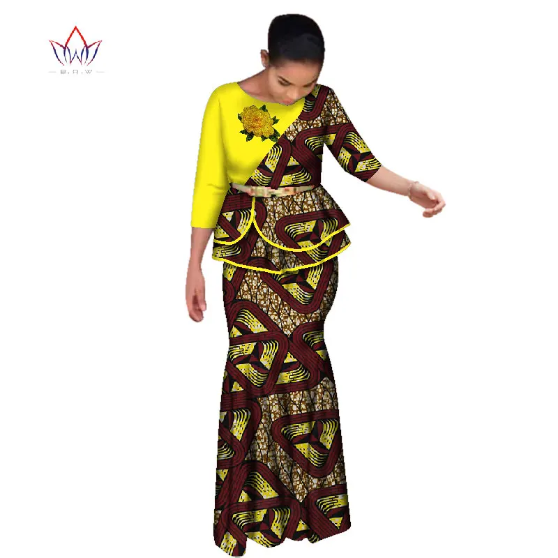 Addition Information of BRW Rose Embroidery Traditional African Skirt Set for Women Dashiki Free Headscarf African Clothes Elegant Party Dress WY2642