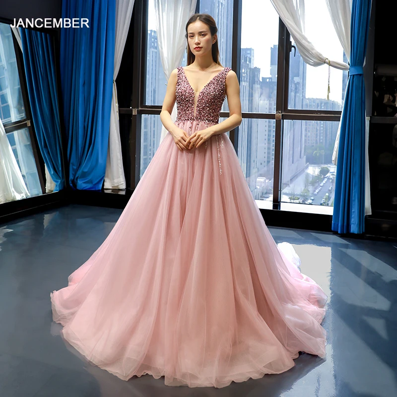 Buy J66713 jancember elegant long party dress A-line sleeveless v-neck lace up formal dresses evening gown платье женское вечернее and You will Save USD 0 or 0% %, Becuase You Just Pay for 1019.98 not Full Price for 1019.98