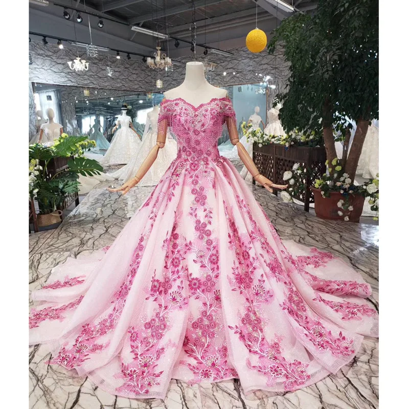 If You want to buy for , then BGW 3230ht A-line Pink Evening Dress 2020 Flower Off The Shoulder Beaded Tassel Lace Up Back Lace Evening Formal Dress For Women is possible make you like