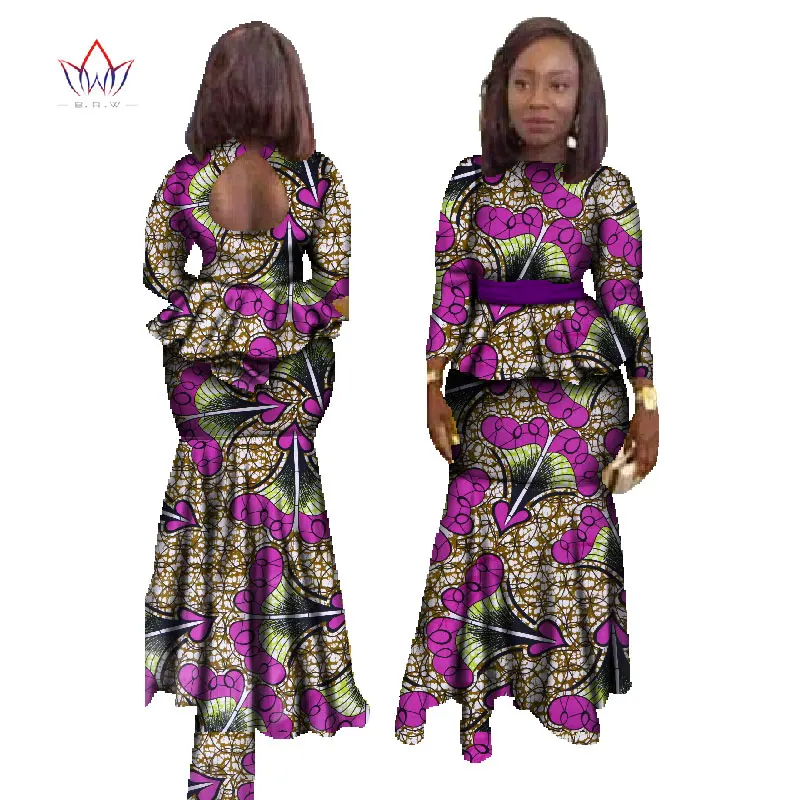 BRW Fashion African Skirt Set for Women Dashiki Plus Size African Clothing Bazin Sexy Traditional African Clothing WY023