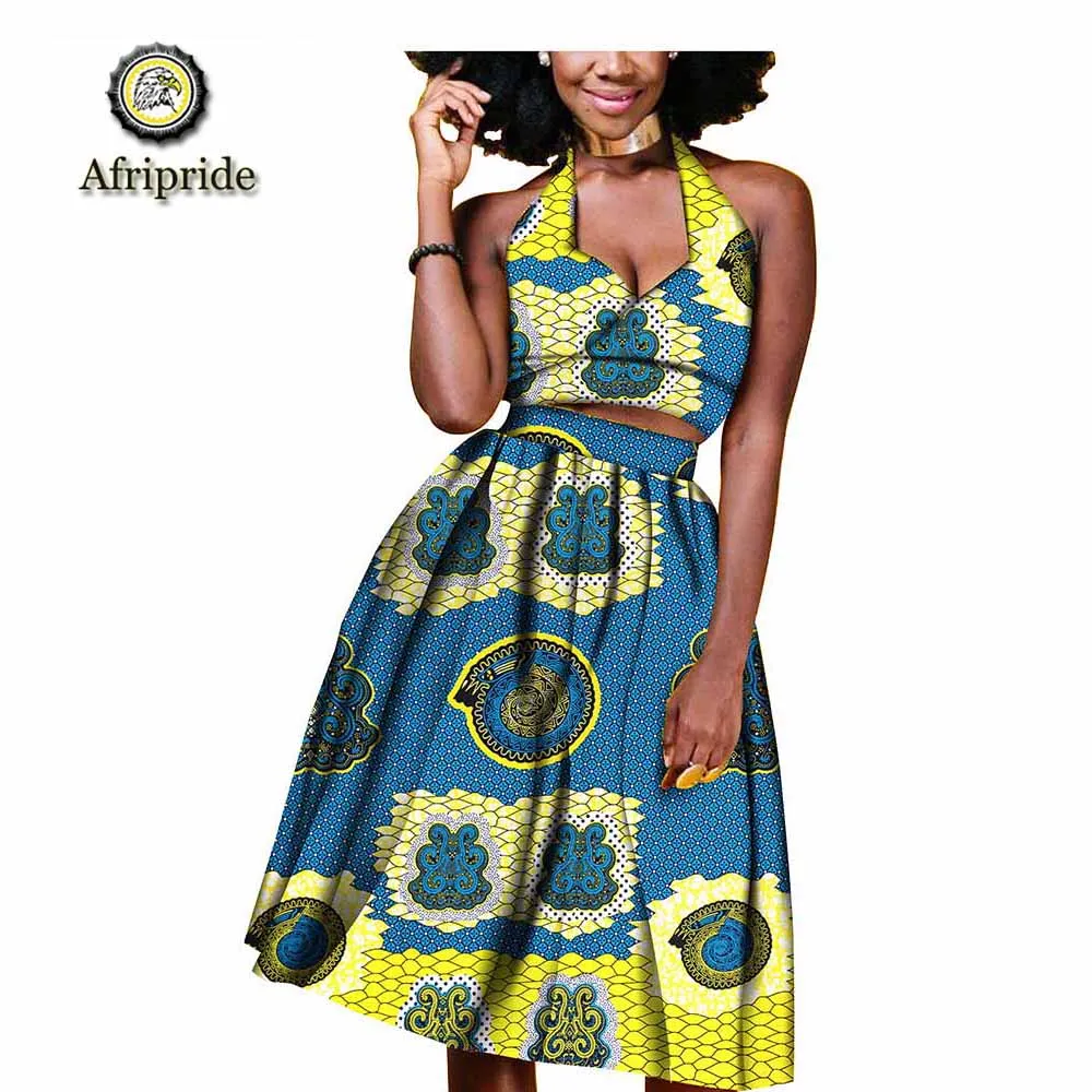 2019 african suits for women AFRIPRIDE tailor made Sleeveless knee length pure cotton ankara print dashiki bazin riche S1826005