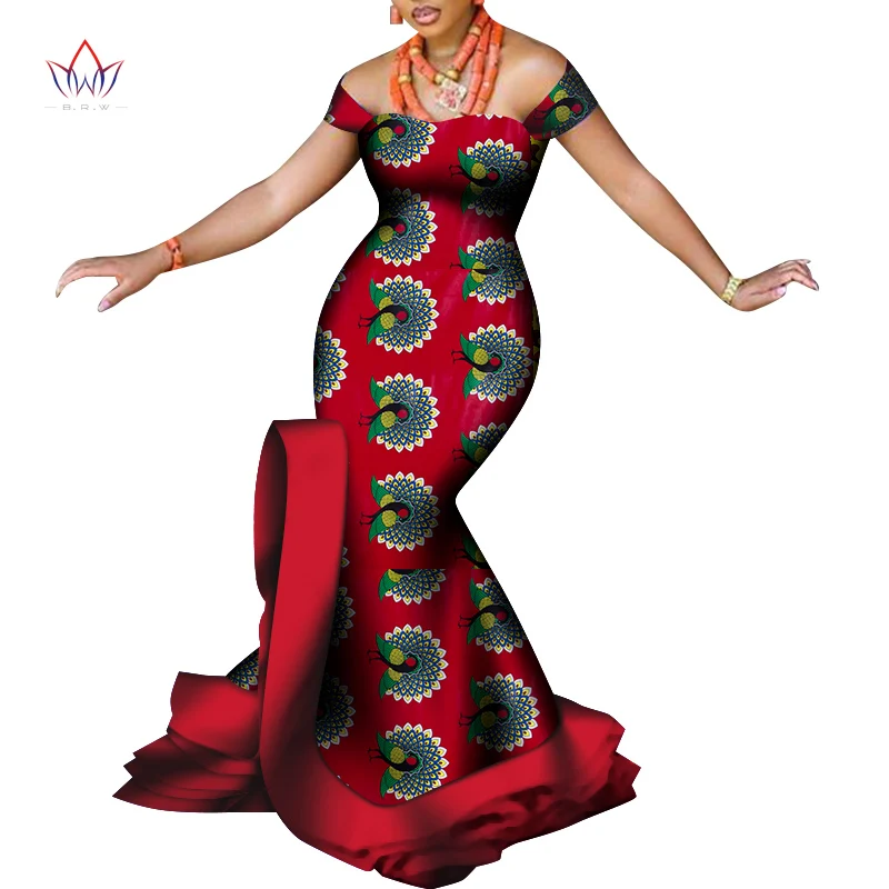 Addition Information of Bintarealwax Off-Shoulder African Dresses For Women Bazin Riche Long Dress Cotton Print Wax Plus Size 6XL Sexy Dress WY8098