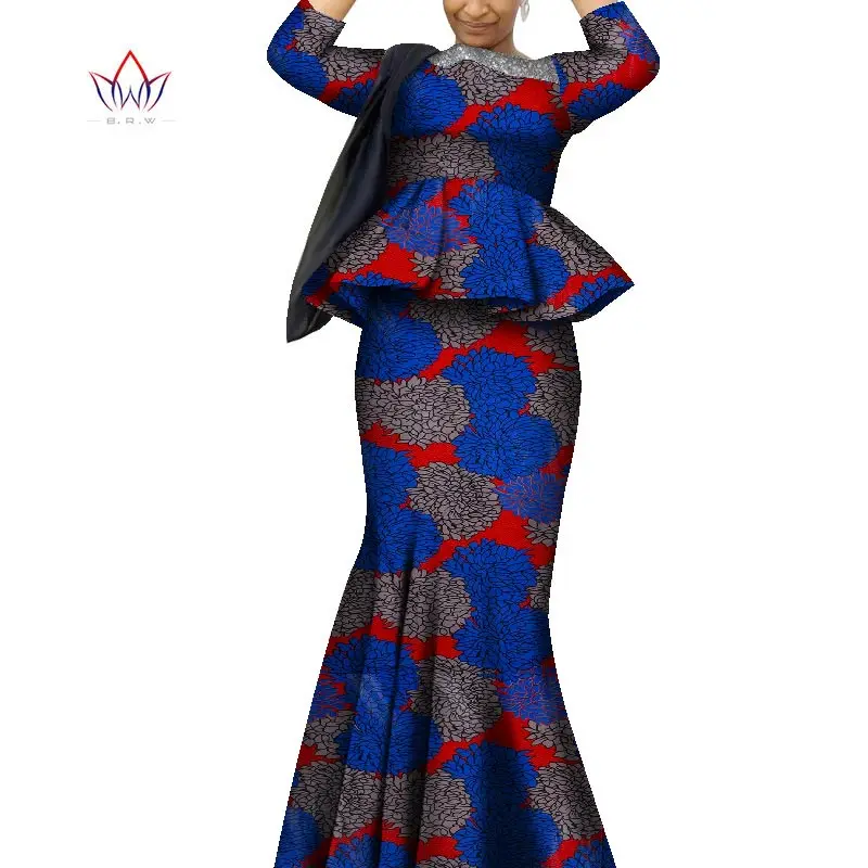 African Traditional Wear for Women Full Sleeve Wholesale 2 PCS Long Skirt Suit Frills Ankara Elegant Outfit For Women WY8515