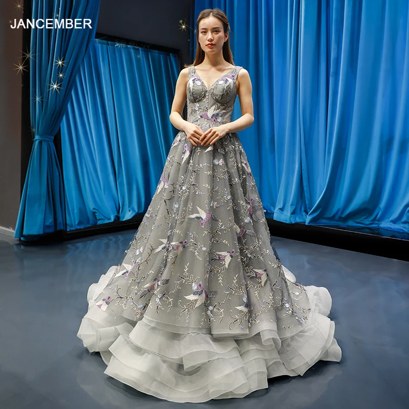 Buy J66790 jancember A-line summer evening dress for women V-neck sexy v-back grey ball gown 2019 женская-одежда платье вечернее and You will Save USD 0 or 0%, Because You Just Pay for 1057.98 not Full Price for 1057.98