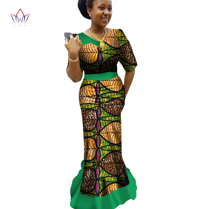 African Women Dress Traditional African Clothing Print Dashiki V-Neck African Dresses for Women Half Sleeve Party Dress WY1687