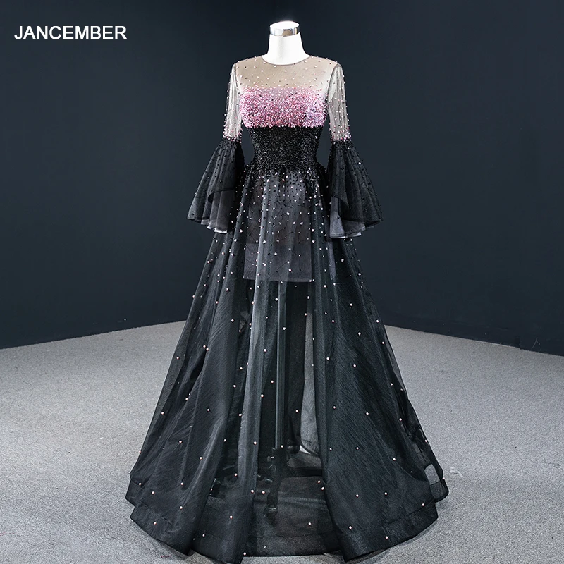Related Product for and J67155 Jancember Long Evening Dresses Flare Sleeves O Neck Beaded Sequined Lace Up Back Latest Robes De Soirée Manches évasées