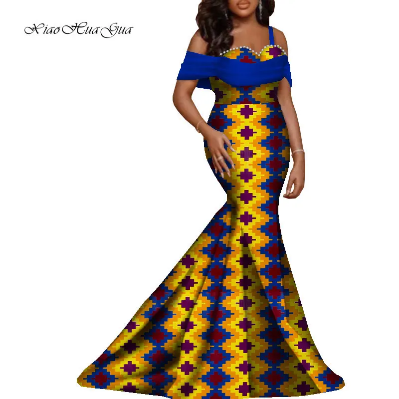 African Dresses for Women 2021 Bazin Riche Floor Length Mermaid Dress for Wedding Evening Party African Print Clothing WY8965