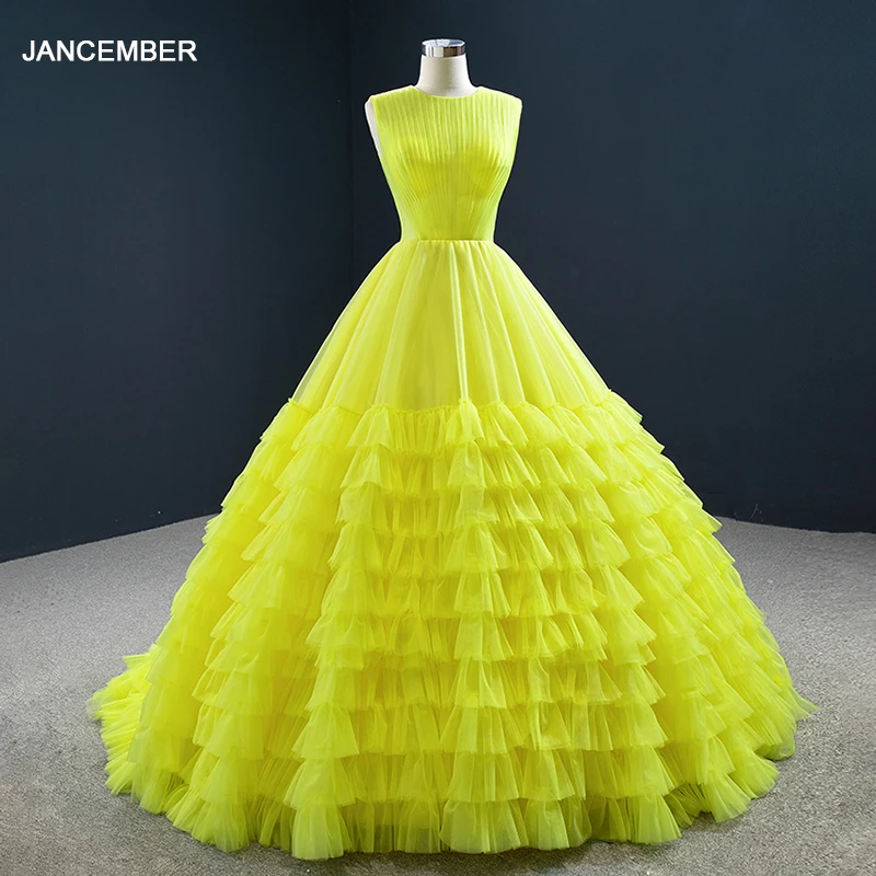 If You search information for , then RSM67158 Yellow Sexy Transparent Tulle Frill Layer Column Dinner Party Dress 2021 Back Lace-up Design Evening Gown may be make you like