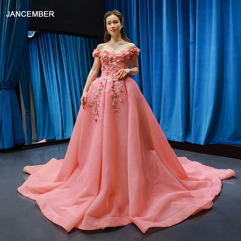 J66795 jancember pink formal evening dresses gown off shoulder V-neck A-line girl pageant dress blue пышные платья для девочек