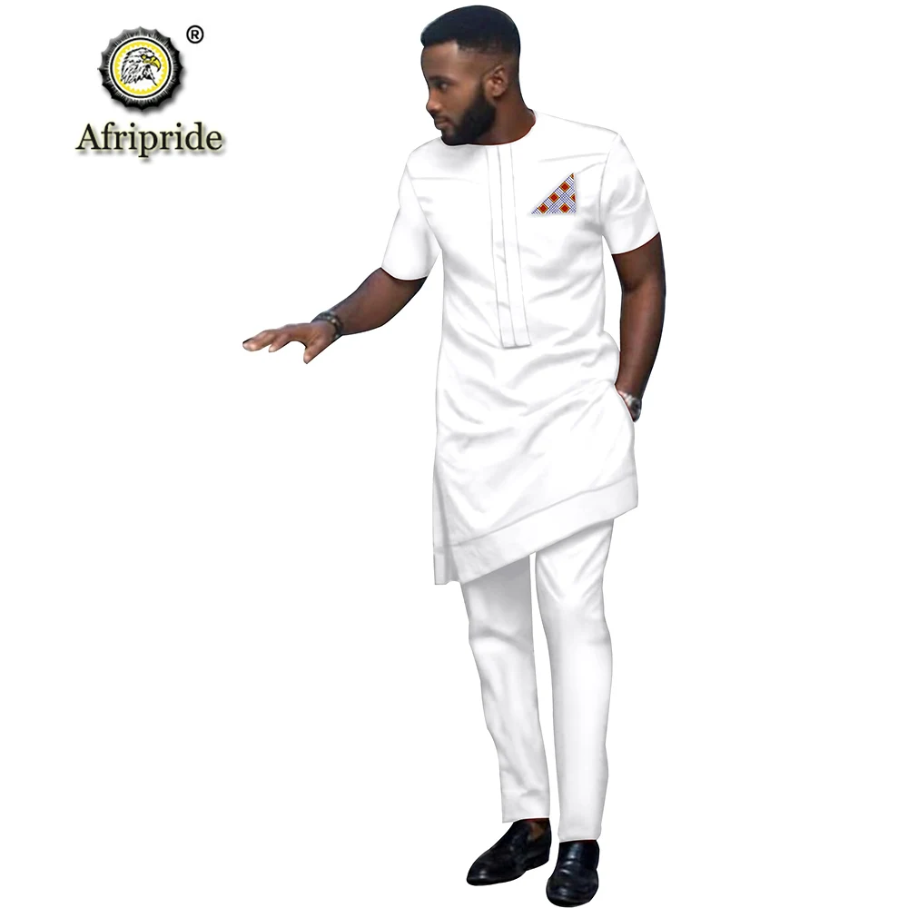 2019 African Men Clothing Tribal Outfit Printed Long Shirt Pant 2 Piece Set Dashiki Short Sleeve Tracksuit AFRIPRIDE S1916016