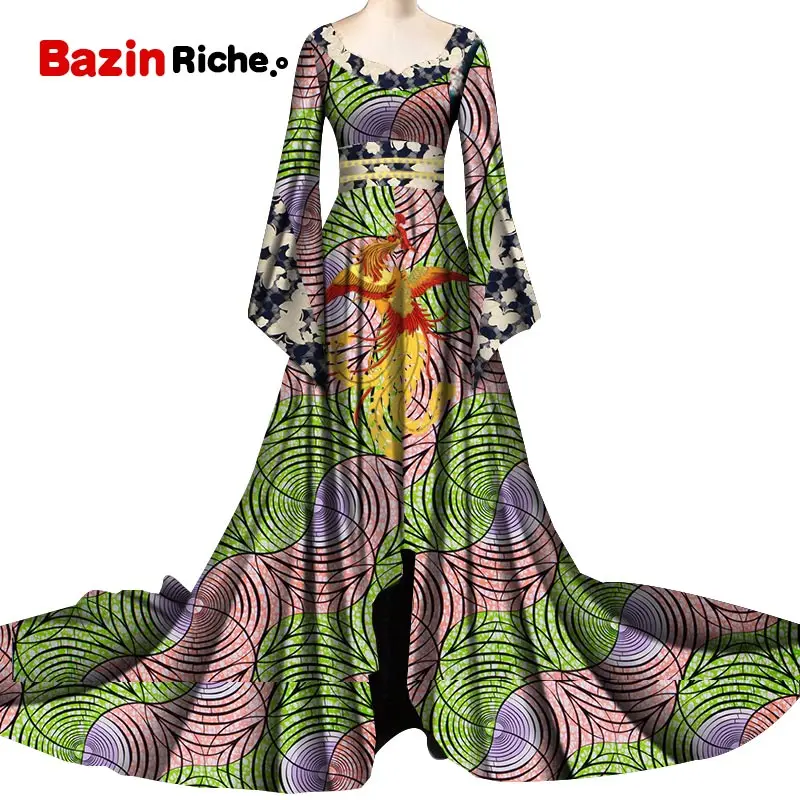 Addition Information of Dashiki African Print Long Dresses for Women Sexy Patchwork Lace O-neck Wedding Floor-length Dresses Bazin Riche Vestidos WY6082