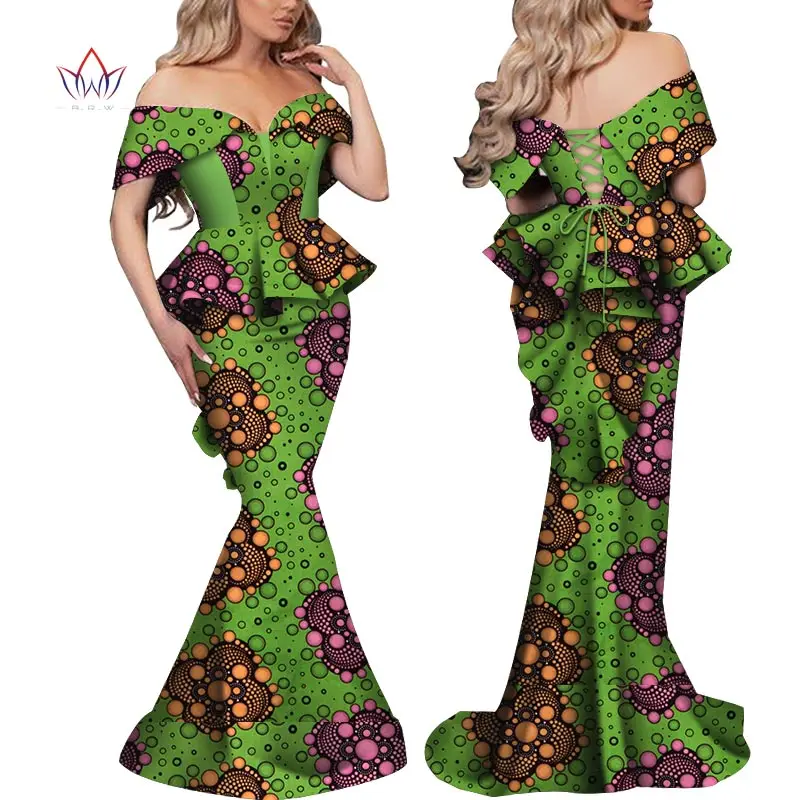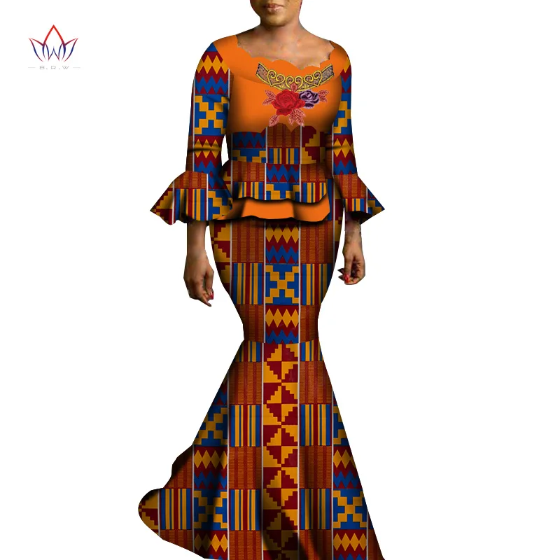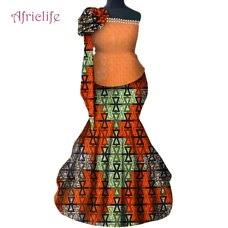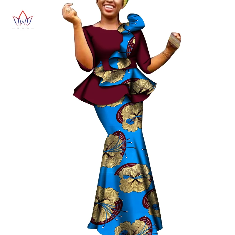 2021 Womens Robe Wax Africain Femme Clothes Top And long Skirt Set Bazin Riche Africa Dashiki 2 Piece Sets Womens Outfits WY6908