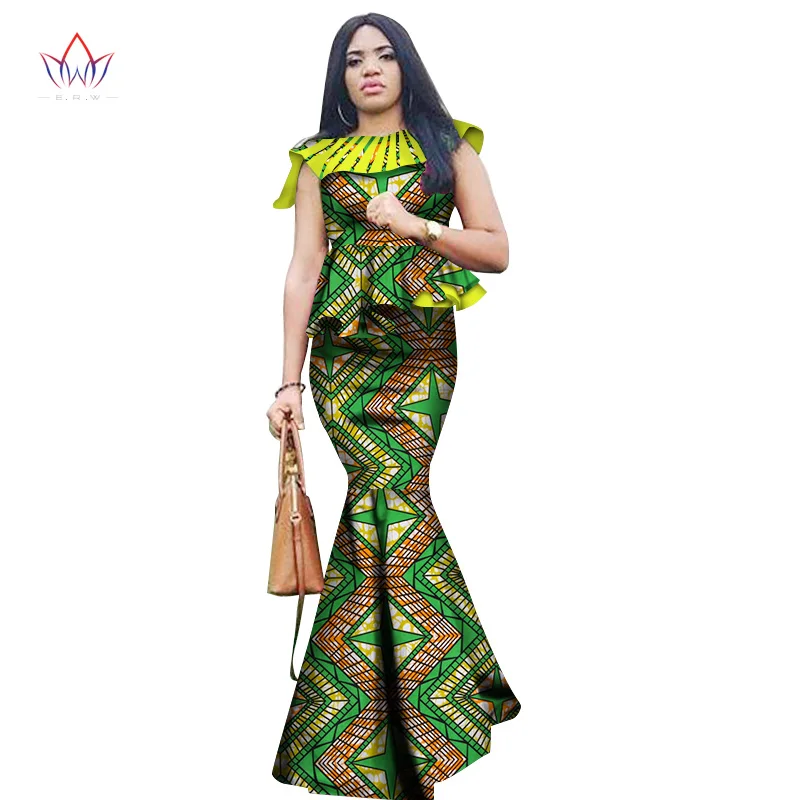 Ladies Clothes African Clothes For Women Ruffle Top And Skirt Set Bazin Riche Africa Dashiki Plus Size Clothing For Women WY3755