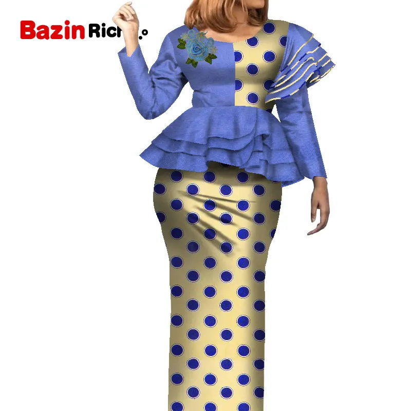 Related Product for and Fashion Patchwork Long Sleeve Dashiki Skirt Suit African Bazin Fabric Plus Size African Women Skirt Set WY7905