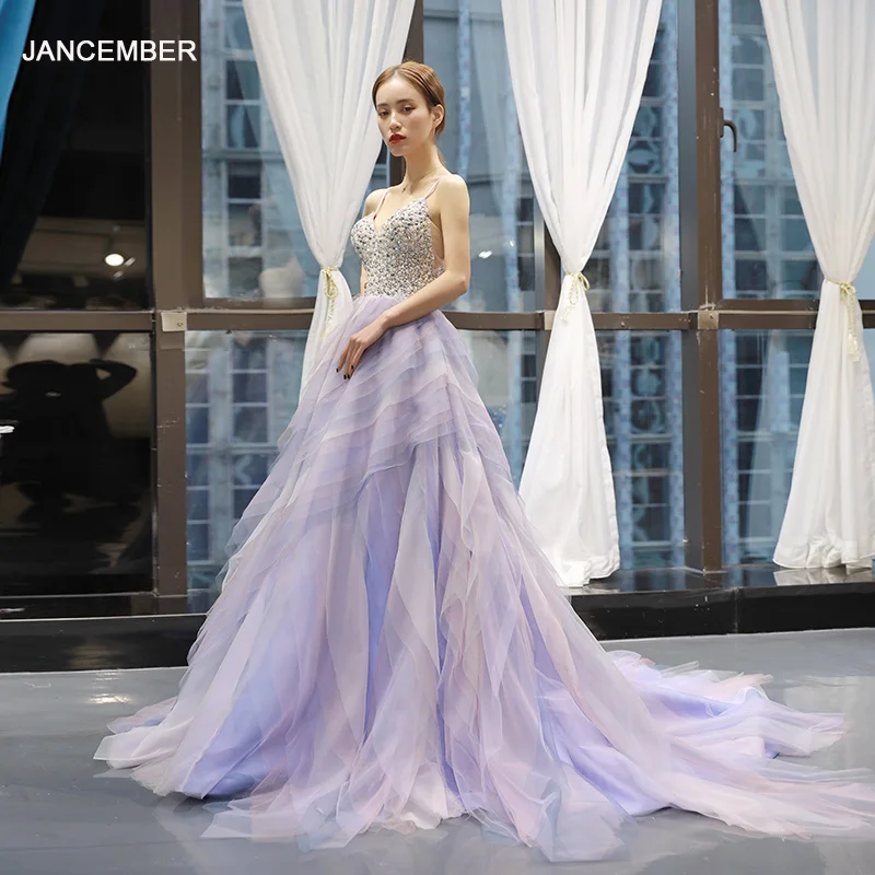 Limited Chance for J66718 jancember evening gown colored spaghetti strap lace elegant evening dress with train new design 2019 kleid mit schleppe
