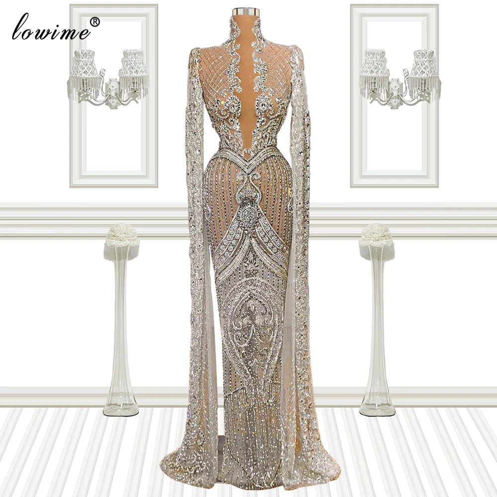 Buy Muslim Silver Heavy Handmade Evening Dresses Long Sleeves Mermaid Evening Gowns Luxury Crystals Prom Dresses For Women Party and You will Save USD 0 or 0% %, Becuase You Just Pay for 799.98 not Full Price for 799.98