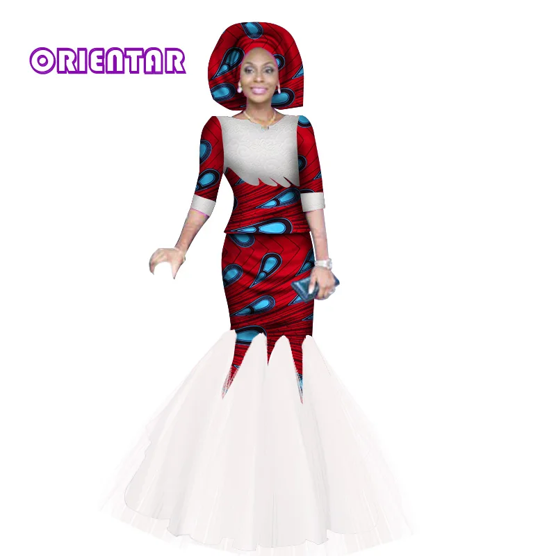 Addition Information of Women African Print Dress with Headtie Wedding Party Traditional African Clothing Bazin Riche Mermaid Dresses for Women WY2844