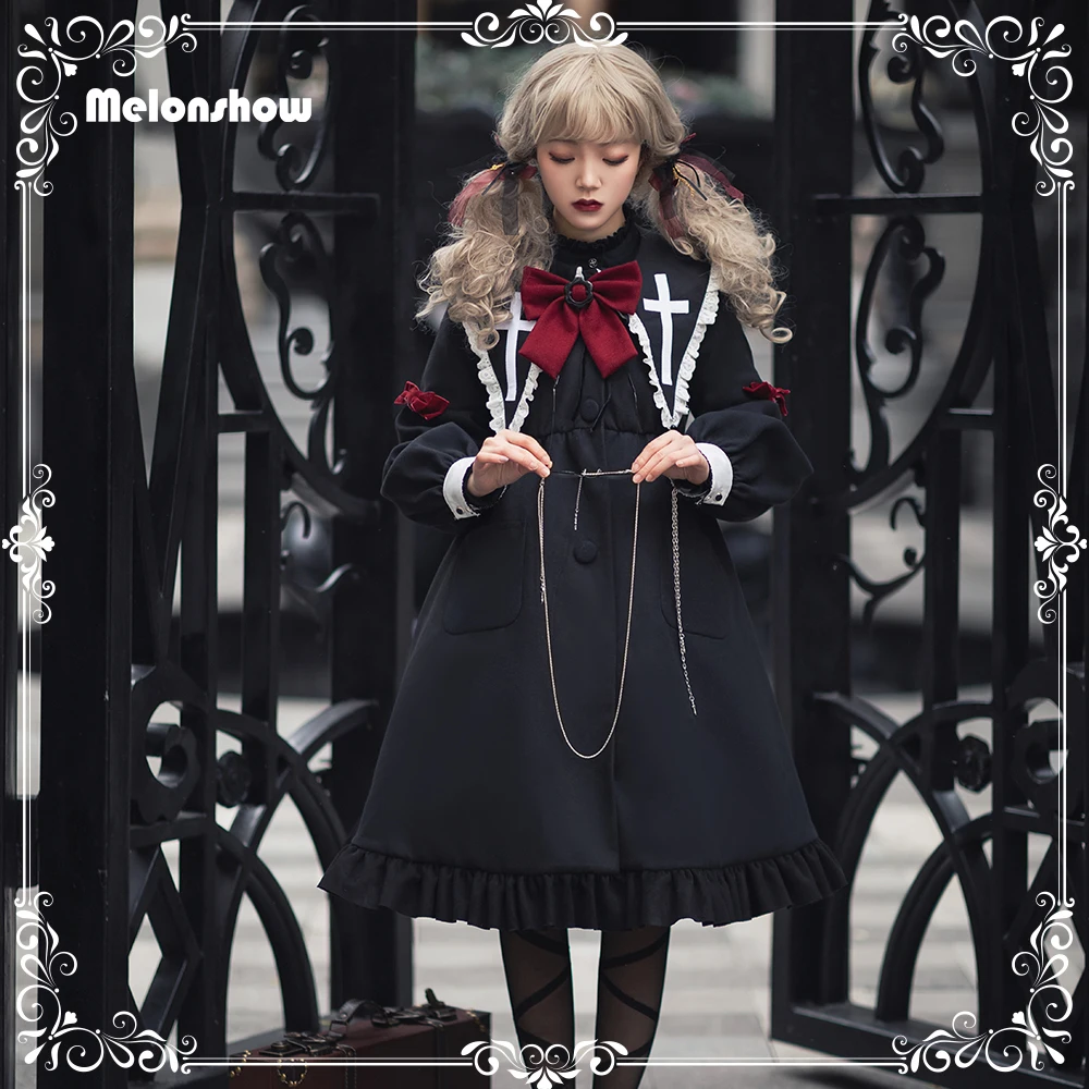 Addition Information of Melonshow Gothic Winter Coat Women Thicken Woolen Overcoat Female Woollen Long Coat Warm Ladies Lolita Dress Goth Outwear