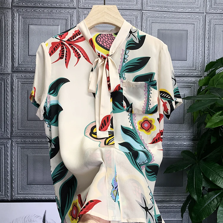 Related Product for and New 100% silk Blouses & Shirts painting with a silver spoon in her mouth feels dye wood atmosphere ribbon printed 32726