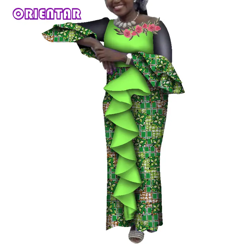 Addition Information of 2019 Women African Dresses Flare Sleeve Pleated Decoration African Print Dresses Long Floor-Length Dress Bazin Riche WY4581