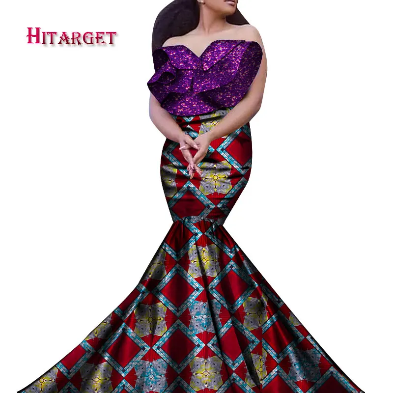 Addition Information of African Short Sleeves off shoulder Print Tops and Skirt Sets for Women Bazin Riche African Clothing 2 Pieces Skirt Set WY6807