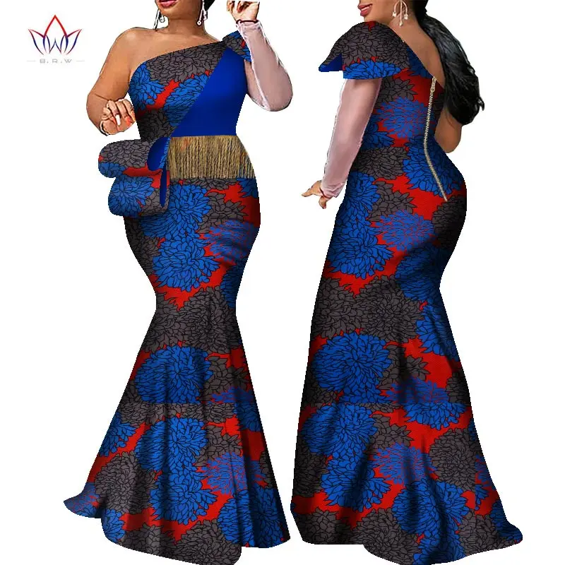 Addition Information of Long Plus Size Africa Clothing for Women Dashiki Fashion Tassel Dress Bazin Riche Wax Dress Traditional Prints Dresses WY7851
